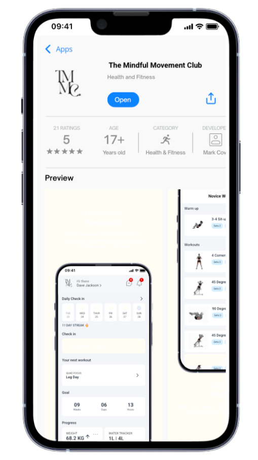 ✺ Weekly training program created based on your personal goals, delivered via TMMC training app.